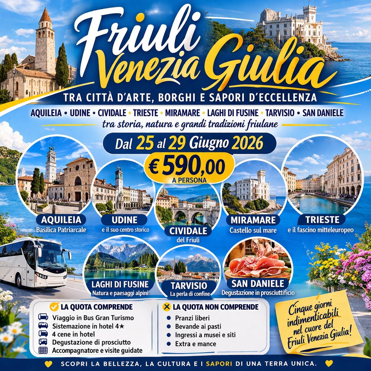 Aquileia, Udine, Cividale del Friuli, Trieste, Laghi di Fusine, Tarvisio e San Daniele