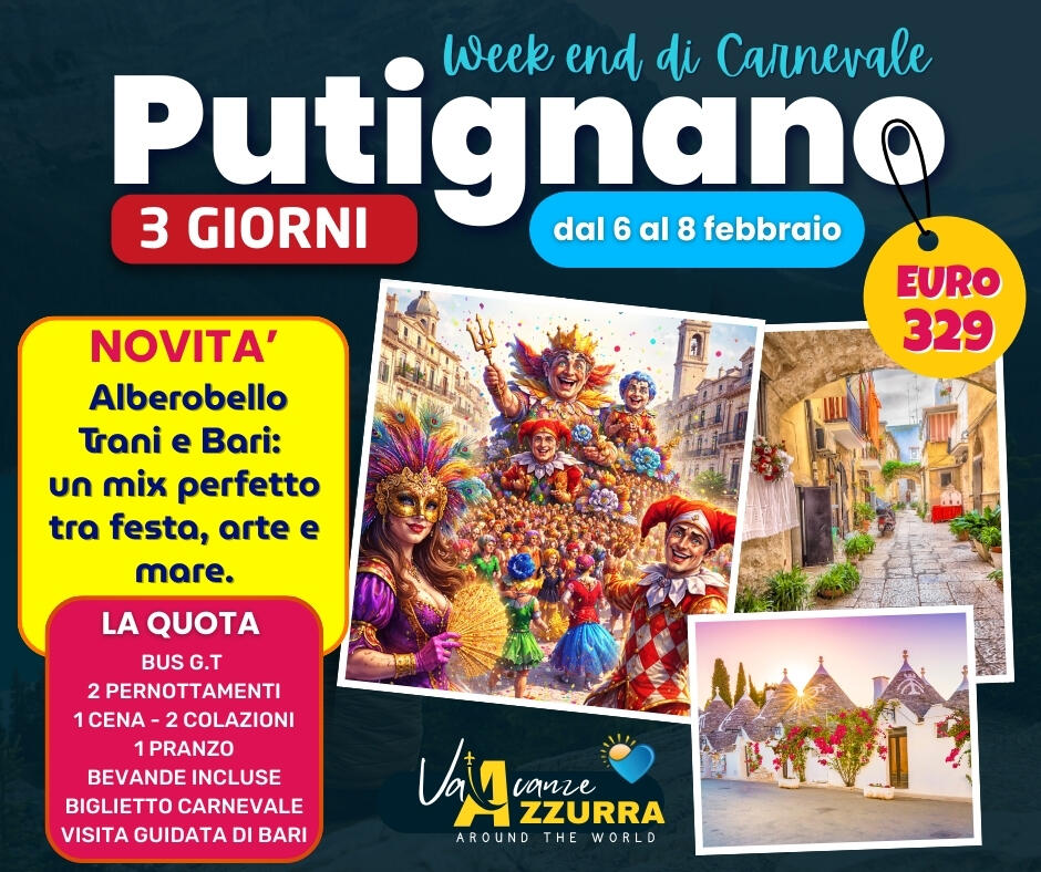 6 FEBBRAIO 2026 TOUR 3 GIORNI CARNEVALE PUTIGNANO