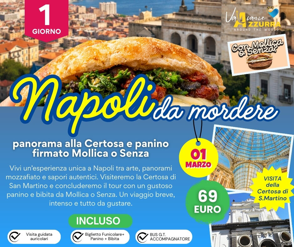 01 MARZO 2026 TOUR 1 GIORNO SCOPRI I LUOGHI CARATTERISTICI DI NAPOLI IN UNA FANTASTICA GIORNATA!